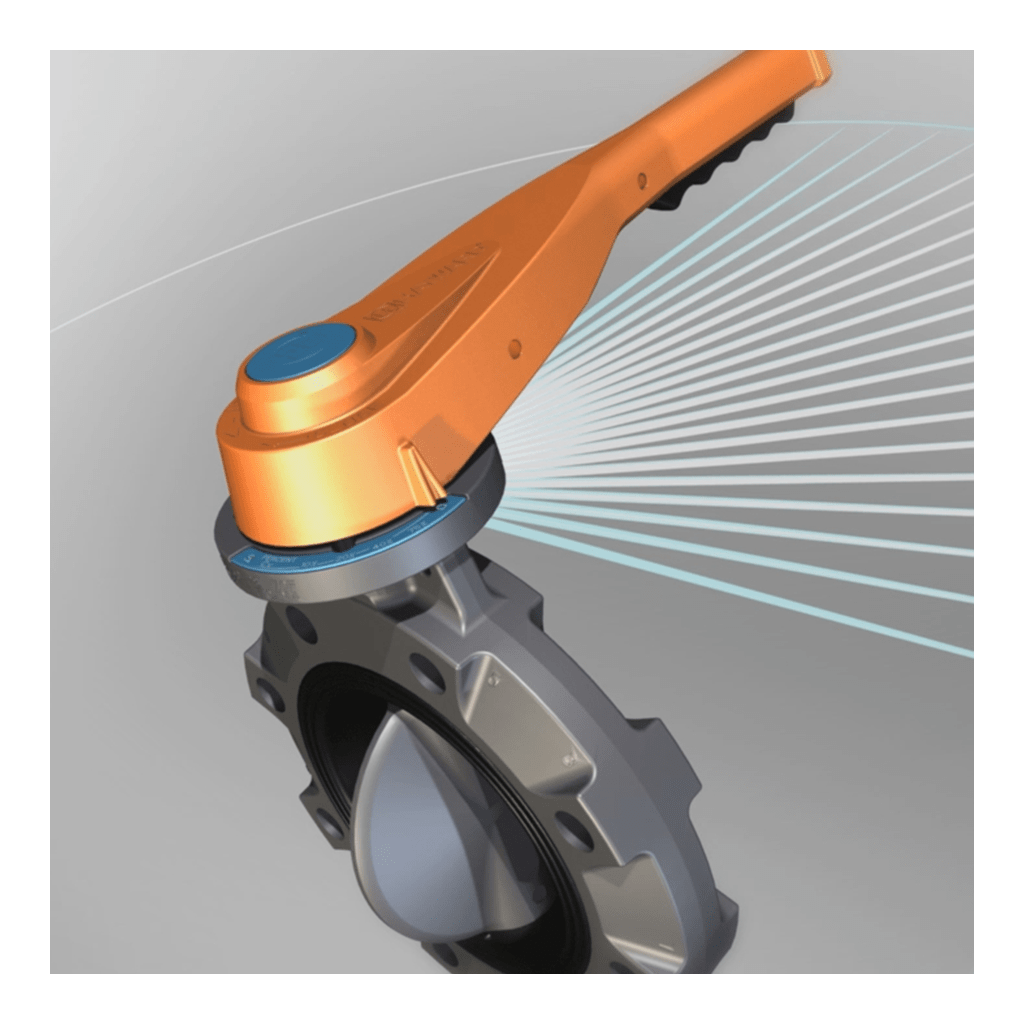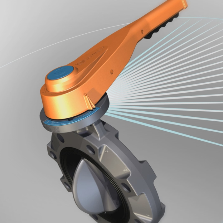 For this video demonstrating the range of motion of a valve, I created several 3D motion graphics elements. An outer ring shows the arc of the handle, while “sunburst” arms represent regular divisions of the various possible settings that the valve can be turned to in order to control the flow of water. The sunburst arms are scaled one after another in sequence as the valve handle sweeps over them, so they extend from “within” the axis of the valve to the outer arc.